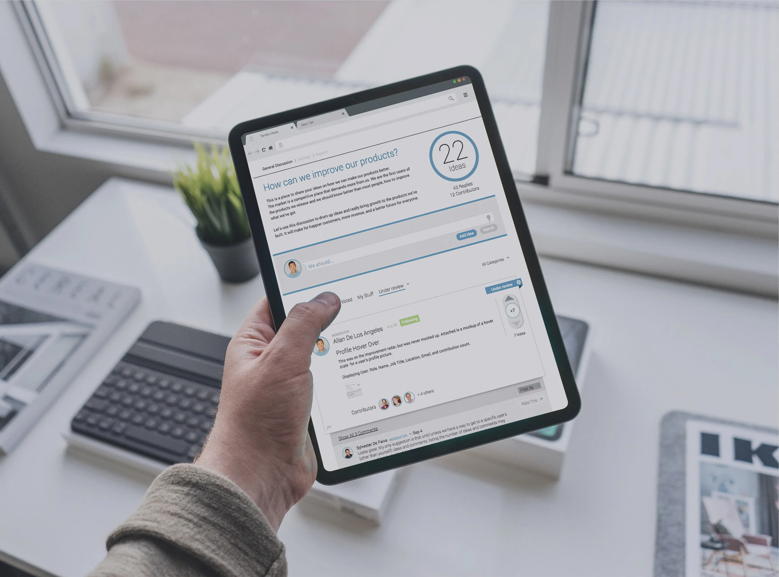 Tembosocial Ideas is designed to socialize idea crowdsourcing. A complex and powerful tool that leverages community engagement to help generate discussion and surface the best ideas.